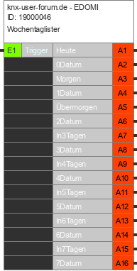 ID:19000046 - Wochentaglister erzeugt ab Datum 7 Wochentagsnummern + Datum